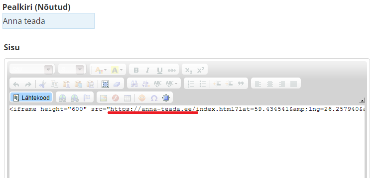 Kui Teie veebilehele on kuvatud Anna Teada (näiteks https://www.haljala.ee/teavita-probleemist), siis tuleb uuendada Iframe'i koodis veebilehe aadress.